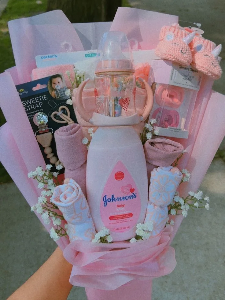 It’s a basket filled with all the things a new parent will desperately need at 3 AM when the baby won’t settle and the world feels lonely.