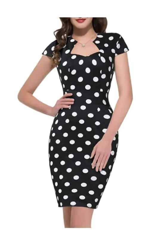 This is another flattering one. A polka dot dress in black just balances out the boldness and helps you showcase the curves in the most perfect way.